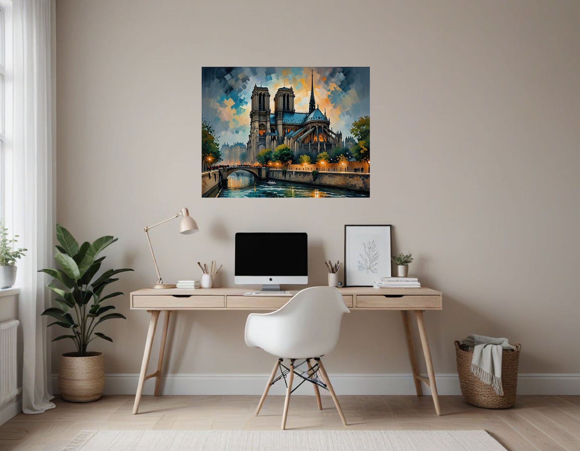 Overall, the painting blends architectural grandeur and everyday life with vivid color, dynamic brushwork, and a sense of wonder, capturing both the historical majesty and the lively ambiance of Paris.